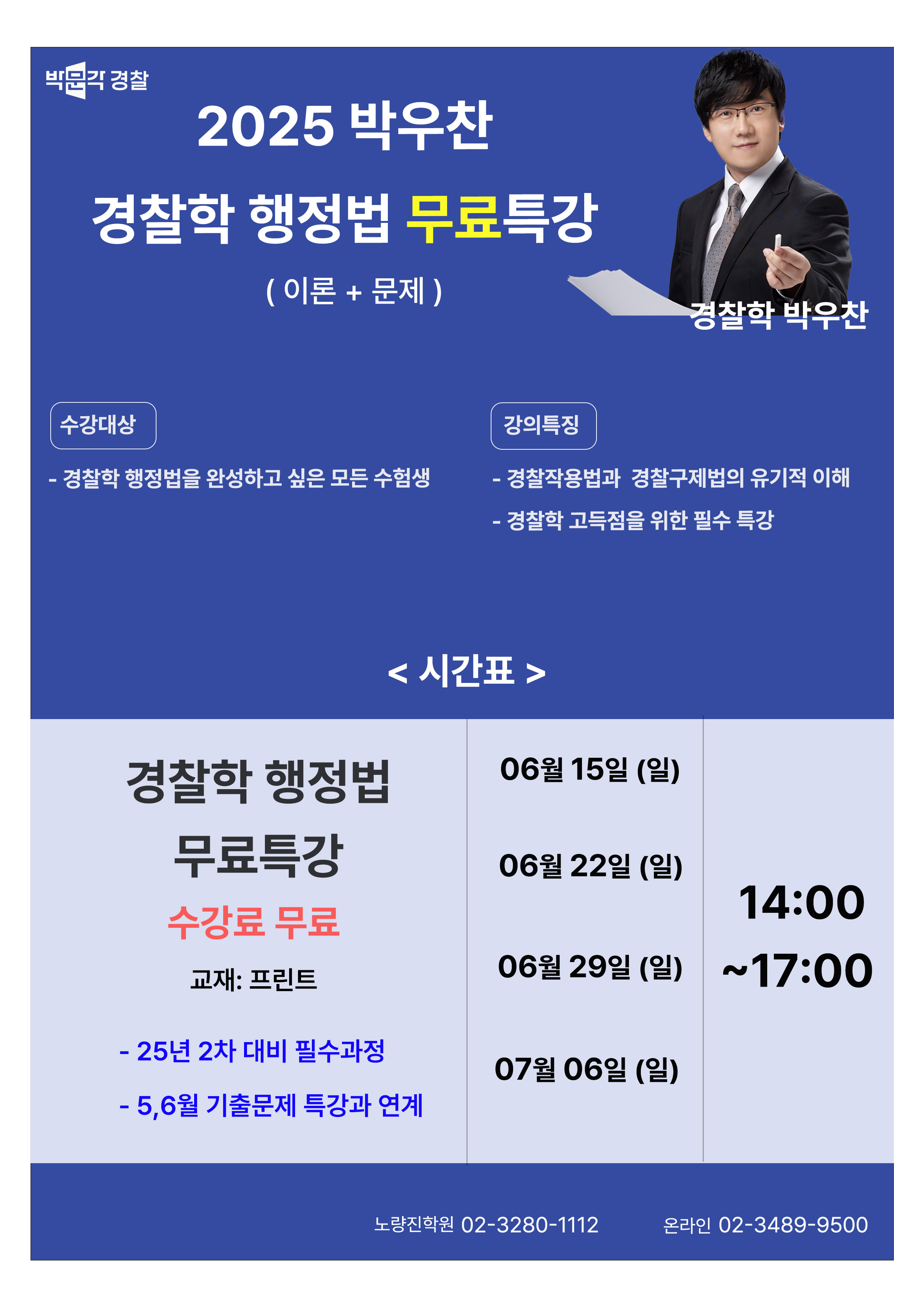 | 897 | [6월] 박우찬 경찰학 행정법 무료 특강 안내 | 운영자 | 16667 | 2025/06/16 |