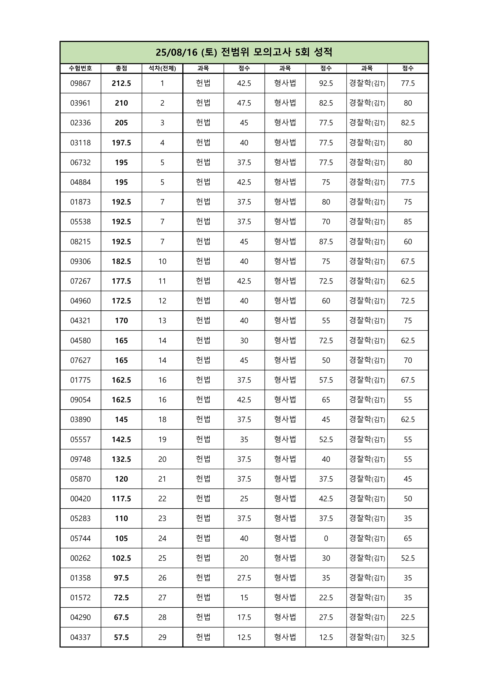 | 901 | 8월 16일 시행 경찰시험대비 전범위 모의.. | 운영자 | 1947 | 2025/08/21 |